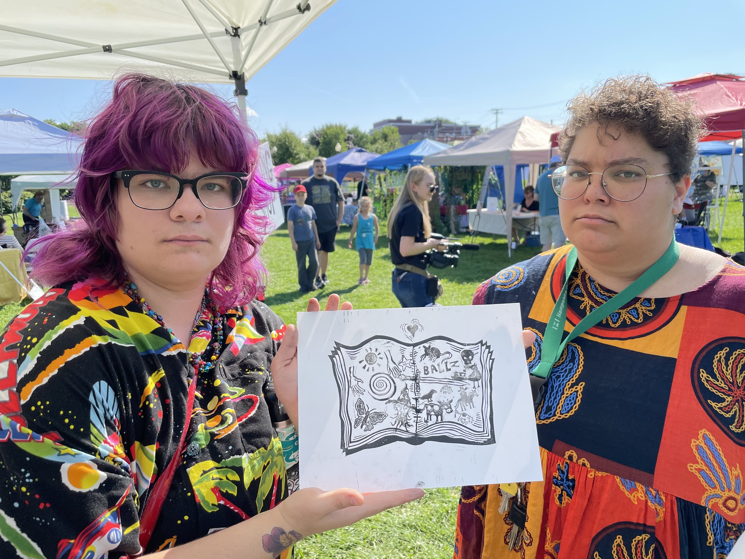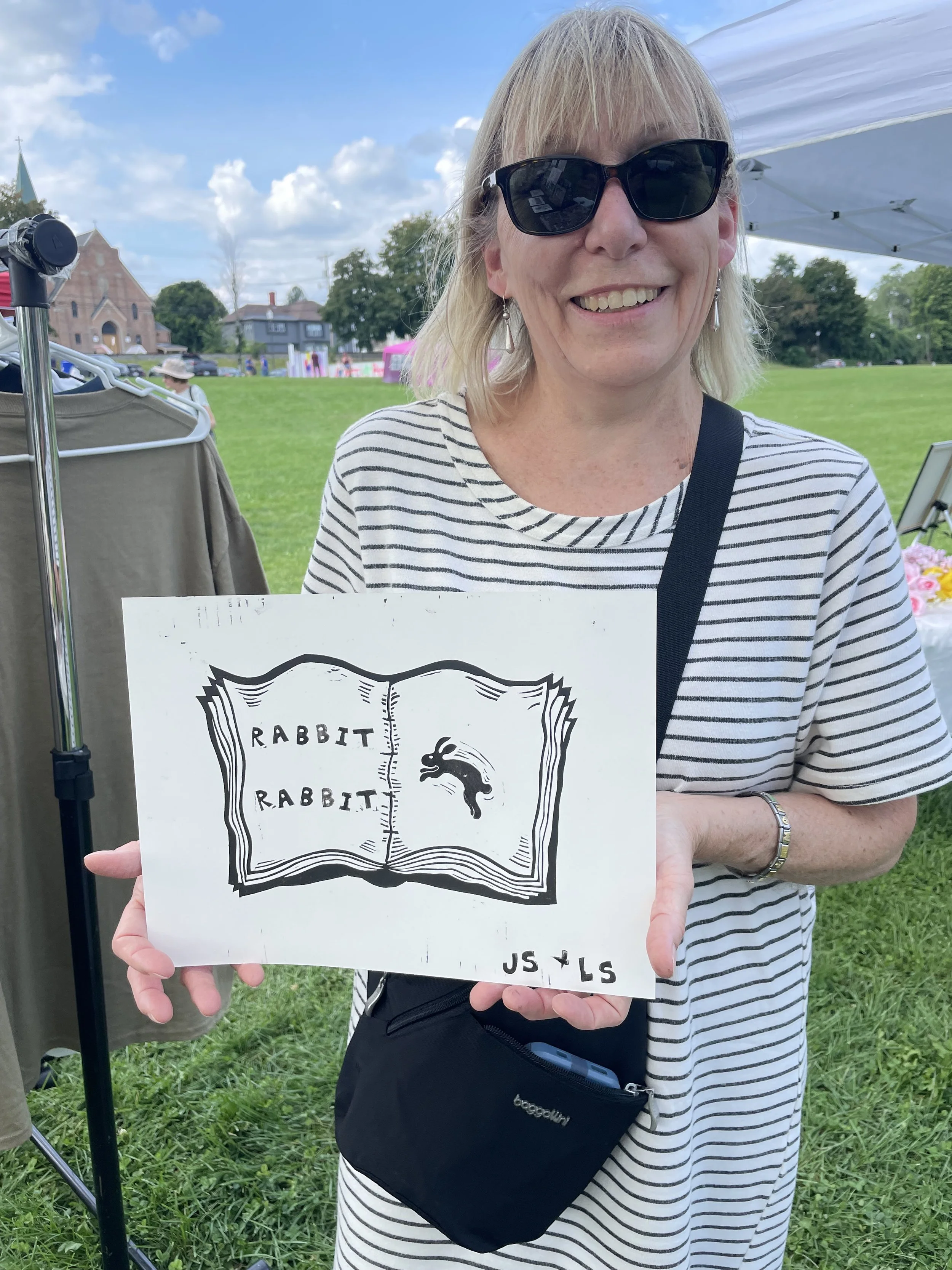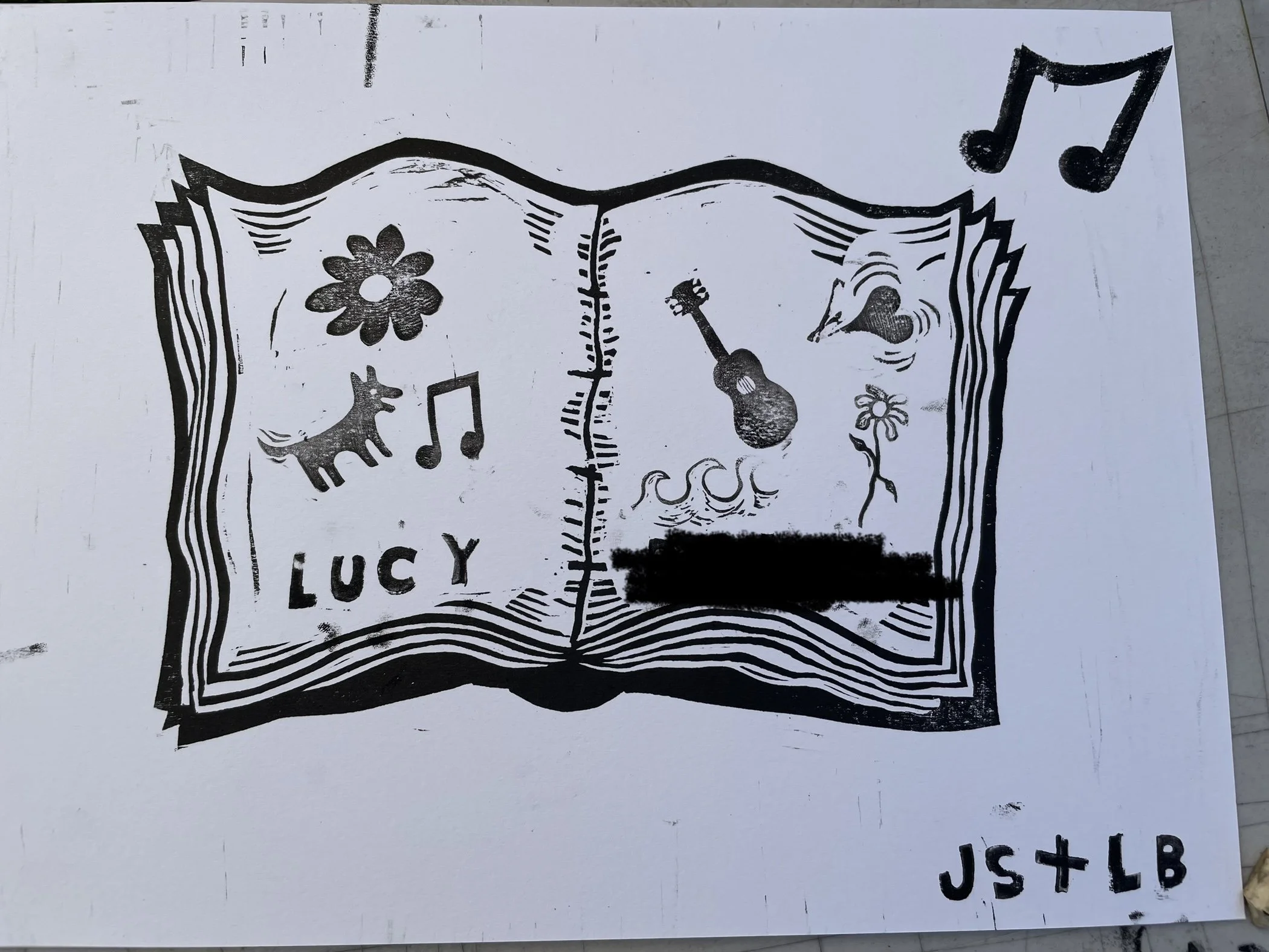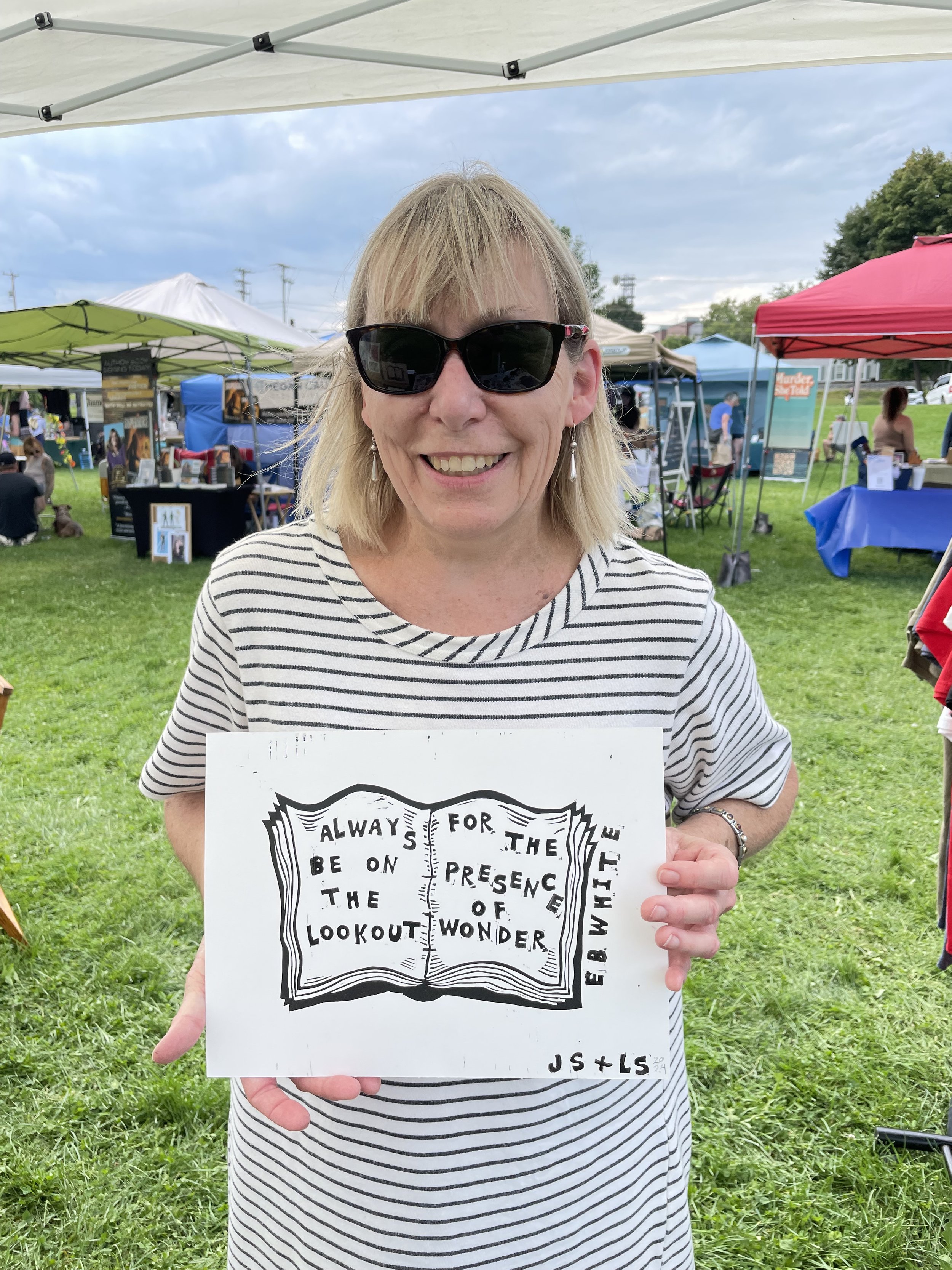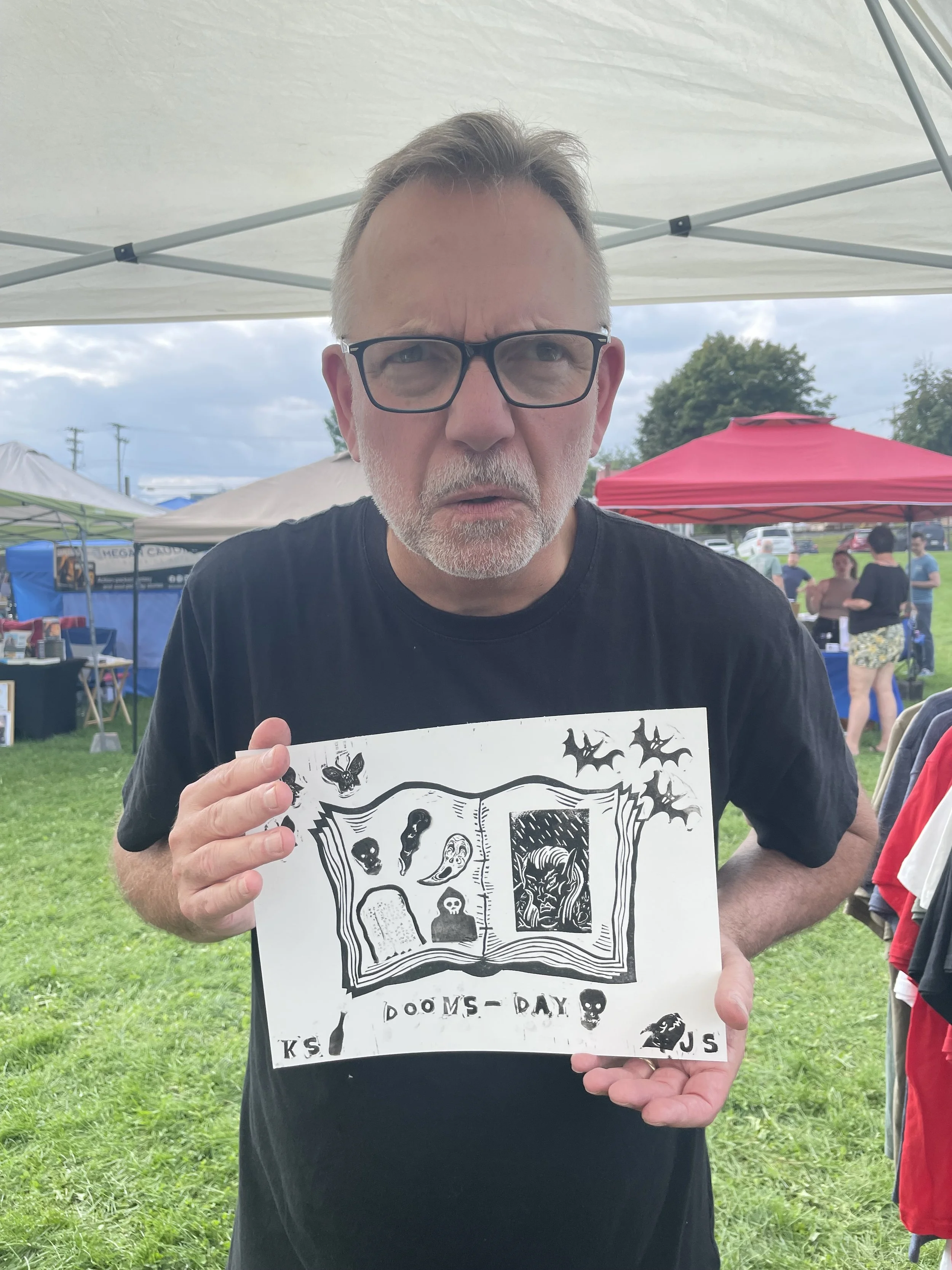 In this workshop, participants choose from a selection of stamps hand carved by James Sylvester, including a full alphabet, and use it to fill in the blank “pages” of a woodcut print of an open faced book.